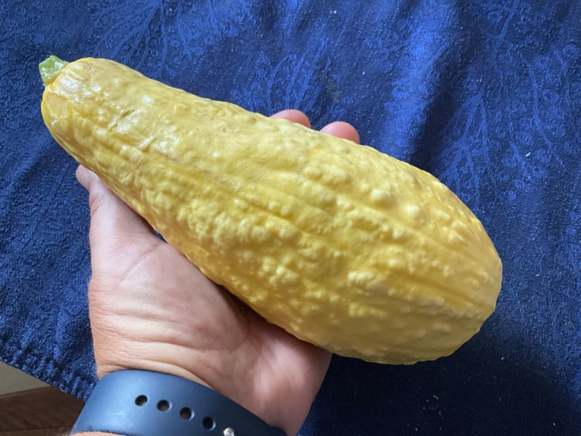 Look at the smaller ones I picked before compared to that ginormous whopper! Mary from Mary’s Heirloom Seeds has some amazing varieties of squashes and as you can see her seeds produce miracles!